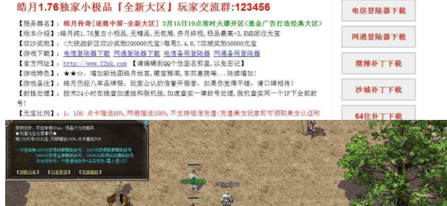 1.76皓月传奇小极品复古版-逐鹿中原-幽冥领地-万恶之源-玛雅神殿-困惑殿堂-深渊魔域-死亡神殿-钳虫巢穴-王者禁地-幻境五层-圣域之门-死亡陵墓-镜像殿堂 皓月1.76独家小极品『全新大区』玩家交流群: 【服务器名】:皓月传奇[逐鹿中原-全新大区] 2月15日19点准时火爆开区<重金广告打造经典大区> 【版本介绍】:皓月纯1.76复古小极品,无精品,无包厢,赤月终极,极品最高+3,RMB回收元宝 【攻沙奖励】:<大统战新区攻沙奖励200000元宝>每周2,4,6,7攻城奖励50000元宝 【游戏下载】:电信登陆器下载 网通登陆器下载 电信备用登陆器 网通备用登陆器 【官方网址】:【请编辑到QQ个性签名那里,以免忘记】 【游戏特色】:★★☆,增加新地图皓月地宫,藏宝雅阁,东郊皇陵等...陆续增加! 【游戏备注】:皓月历经八年品牌服,玩家公认的信誉开服者,如果你觉得不错,请口碑相传! 【封挂处理】:技术24小时在线查加速挂和脱机挂,加速查实一律封号处理,脱机查实同一个IP下全部封号! 【元宝比例】:1:100 点卡赠送80%,网银赠送100%,不支持短信充值<充值美女玩家即可领取美女认证称号> 赞助大使介绍(奖励请联系管理领取) 为感谢所有朋友对我们的支持,特推出三职业通用斗笠和宝石! 充值达到1000RMB,联系客服领取全属性(3-3)斗笠 领取黄金斗笠 充值达到2000RMB,联系客服领取全属性(4-4)斗笠 领取白金斗笠 充值达到3000RMB,联系客服领取全属性(5-5)斗笠 领取钻石斗笠 充值达到5000RMB,联系客服领取全属性(6-6)斗笠 领取至尊斗笠 领取王者宝石条件是拥有至尊斗笠+且在一次性充值5000即可领取全属性(1-1) 领取至尊宝石条件是拥有王者宝石+且在一次性充值5000即可领取全属性(2-2) 奖励规则 新区攻沙200000元宝,老区每周的2.4.6.7系统攻沙50000元宝,每月开放3至4个新区,每个新区连续2-3天广告进行地毯式宣传,100%人气火爆! 人物幸运 商城有售普通祝福油,武器幸运值最高可喝到7 幸运3项链(怪物爆出难度:★★★★☆) 幸运2项链(怪物爆出难度:★★☆) 请注意,游戏内很多小怪爆出的项链可能会有意外的惊喜! 魔法技能 1.本服35级以前技能在你达到相应等级时,系统全部自动赠送! 2.35级技能书可在尸王殿内爆出,每10分钟刷新一次! 3.法师44级可以去封魔谷招900勇士(盟重传送员-封魔洞口)! 4.本服无4级技能,完美仿盛大1.76版本! 装备爆率 35级新书:爆率很高! 难度:☆ 沃玛装备:爆率不错! 难度:★ 袓玛装备:爆率适中! 难度:★☆ 赤月装备:爆率一般! 难度:★★☆ 40级衣服:爆率一般! 难度:★★☆ 怒斩武器:爆率一般! 难度:★★☆ 幸运项链:爆率很低! 难度:★★★ 屠龙霸者:爆率极低! 难度:★★★★ 装备出处 屠龙出处:暗之赤月恶魔,暗之地藏王,暗之牛魔王,祖玛教主 怒斩系列:暗牛,牛魔王,地藏,暗之地藏,暗之赤月魔,祖玛和黄泉教主 六新衣服:重装使者,各大新衣服BOSS 荣誉勋章:圣域BOSS,暗之地藏王 赤月首饰:双头血魔,双头金刚,赤月恶魔,暗之赤月恶魔,暗之地藏王 祖玛装备:极品祖玛,牛魔将军和祭祀,白野猪等各类大小BOSS 沃玛装备:普通祖玛,极品祖玛,沃玛教主,沃玛卫士等各类大小BOSS 皇陵迷宫走法:左 上 上 上 右  链接:https://pan.baidu.com/s/1fnvl0y-7MydwCKnjezPX1A 提取码:yuxy |